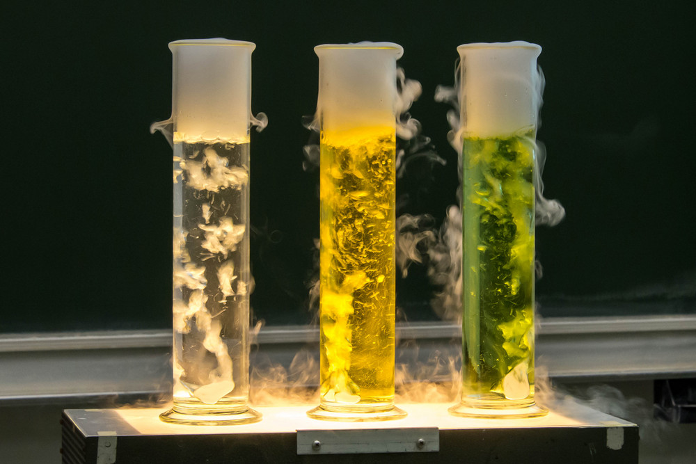 Prof. Strohmann bei einem Farbexperiment © Ralf Maserski​/​TU Dortmund