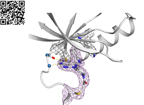 3-dimensionale Struktur der Kinase-Bindetasche des Epidermal Growth Factor Receptors (EGFR) mit einem QR-Code. Zum Betrachten der Struktur wird die Augment App benötigt. Einfach den QR-Code mit der Kamera (IPhone) oder einem QR-Code Scanner (Android) scannen.