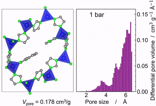 Durch Hochdruck-Röntgenbeugungsexperimente, welche an der Synchrotronstrahlungsquelle Diamond Light Source (UK) durchgeführt wurden, konnten Doktorand Jianbo Song und weitere Mitglieder der Arbeitsgruppe Henke das ungewöhnliche Verhalten von responsiven MOFs bei mechanischer Belastung im Detail untersuchen. Dabei wurden MOFs aus der Untergruppe der Zeolitic Imidazolate Frameworks (ZIFs) hydraulisch einem Umgebungsdruck von bis zu 4000 bar ausgesetzt und parallel dazu die Netzwerkstruktur mittels Röntgenbeugung untersucht. Die Messdaten zeigen, dass sich die offenen Gerüststrukturen mit steigendem Druck in eine geschlossene Gerüststruktur umwandeln (siehe Animation). Zudem lässt sich durch partielle chemische Modifizierung der organischen Gerüstbausteine die Flexibilität der Strukturen gezielt einstellen, so dass die Umwandlung von der offenen in die geschlossene Struktur entweder sprunghaft (diskontinuierlich) oder kontinuierlich erfolgt. Bei letzterem Verhalten kann die Porengröße der Materialien durch den mechanischen Druck genau angepasst werden, was neue Möglichkeiten für die technische Anwendung von solchen flexiblen MOFs in Gastrennmembranen, Stoßdämpfern und nanoskopischen Aktoren eröffnet.