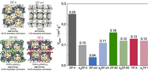 Gläser von metallorganischen Gerüstverbindungen (Metal-Organic Frameworks, MOFs) sind eine neue Klasse von Glasmaterialien mit immensem Potenzial für Anwendungen in der Optik, Gastrennung und Ionenleitung. Aufgrund der inhärenten Schwierigkeit, die atomistische Struktur amorpher Gläser zu bestimmen, ist die strukturelle Porosität der MOF-Gläsern nur unzureichend bekannt. In einer aktuellen Publikation im renommierten Journal Nature Communications berichten Chemiker der Arbeitsgruppe Henke erstmals über die Vermessung der Porosität von MOF-Gläsern durch Sorption von CO2 und verschiedenen Kohlenwasserstoffgasen. Die gewonnenen Erkenntnisse sind von Bedeutung für künftige Anwendungen von MOF-Gläsern in hocheffizienten Membranen für die Gasseparation und als Festkörperelektrolyte in der Batterietechnik.