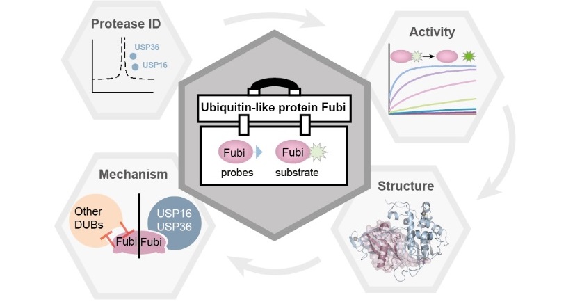 Das kleine Protein Ubiquitin ist besonders dafür bekannt, andere Proteine für deren Abbau zu markieren, und wirkt dadurch in der Regulation aller zellulären Prozesse mit. Parallel zum Ubiquitin-System existieren verschiedene andere Ubiquitin-ähnliche Proteine, von denen Fubi trotz seiner immun-modulatorischen Aktivität nur wenig untersucht ist. Fubi wird von Zellen als Fusionsprotein mit dem ribosomalen Protein S30 hergestellt, und muss für funktionierende Ribosomen, den Proteinfabriken der Zelle, von S30 abgetrennt werden. Immunzellen nutzen dieses Nebenprodukt der Ribosom-Herstellung als Signalprotein, um beispielsweise in der Gebärmutter die Aktivität des mütterlichen Immunsystems lokal abzusenken und damit die Einnistung von Embryonen zu ermöglichen. Wie Fubi spezifisch von Proteasen erkannt wird und wie diese es von Ubiquitin unterscheiden war bisher nicht bekannt.