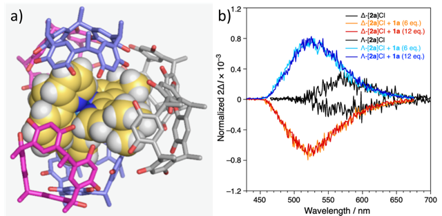 Chirale Iridiumkomplexe eignen sich als CPL-Emitter, strahlen also nach Anregung zirkular-polarisiertes Licht aus. Dies macht solche Verbindungen interessant für zahlreiche Anwendungen, z.B. in effizienten Displays und der Optoelektronik. Die Forschung an CPL-Emittern strebt die Erhöhung des Dissymmetriefaktors, welcher die relative Differenz zwischen links und rechts zirkular polarisierter Lumineszenz angibt, und der Emissionsintensität an. Letztere wird im beschriebenen Wirt-Gast-Komplex im Vergleich zu seiner freien Form stark erhöht, was auf die Einschränkung seiner molekularen Dynamik im Wirt zurückzuführen ist. Dadurch, dass sich der Iridiumkomplex in einer asymmetrischen Umgebung (der verzerrten hexameren Kapsel) befindet, werden außerdem elektrische und magnetische Übergangsdipolmomente so moduliert, dass sich der resultierende Dissymmetriefaktor vervierfacht. Somit stellt das System eine neue Strategie zur Modulation der Effizienz von CPL-Emittern auf Basis löslicher Aggregate dar.