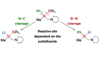 The competition between Si–Si and Si–C cleavage in functionalised oligosilanes: about their reactivity with elemental lithium: