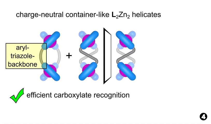 Unsere aktuelle Untersuchung und Malavika's erste Veröffentlichung als Erstautorin "Chiroptical Recognition of Carboxylates with Charge-Neutral Double-Stranded Zinc(II) Helicates" ist in Chemistry — A European Journal erschienen! In dieser Arbeit haben wir die stereodynamischen Eigenschaften neutraler Helicate, welche ein Aryl-Triazol-Rückgrat aufweisen und Mono- wie auch Dicarboxylat-Anionen binden, enträtselt. Die Eigenschaften sind die Grundlage für die chiroptische Erkennung chiraler Carboxylat-Anionen und der Chiralitätsanalyse (ee Bestimmung) mit Hilfe des Rezeptors.